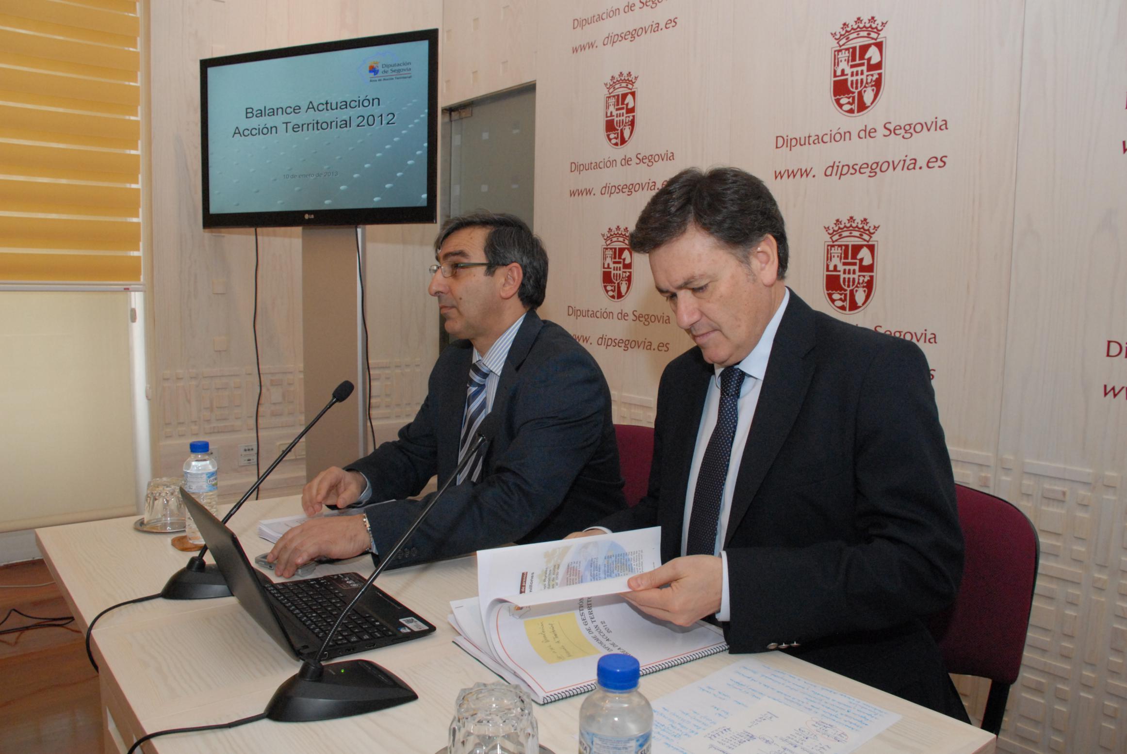 El Presidente de la Diputación Provincial de Segovia, Francisco Vázquez, acompañado por el Diputado de Acción Territorial, José Luis Sanz Merino, ha realizado hoy un balance de actuación de dicho Departamento durante el pasado año 2012, donde se enmarca la labor desarrollada por el Servicio de Infraestructura y Obras, el de Planificación y Cooperación Económica Local, Asistencia y Asesoramiento a Municipios y Arquitectura y Urbanismo.